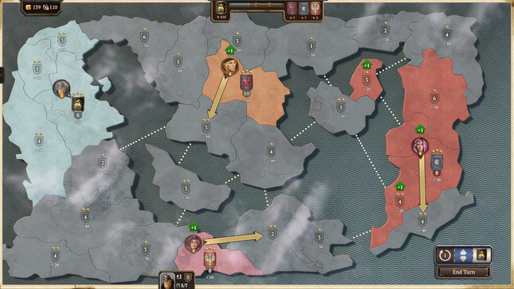 With these setting, this is how it’ll look on turn 1, as your army ventures out across the land, choosing which battles to encounter and growing your factions strength.