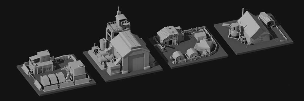 The game designers have agreed on a phasing system that has made it necessary for base building to be upgradeable. I tried to figure out how the upgrades might look visually and did some block-outs for smaller or bigger versions of the existing buildings. I also worked on the Saxonian base buildings.