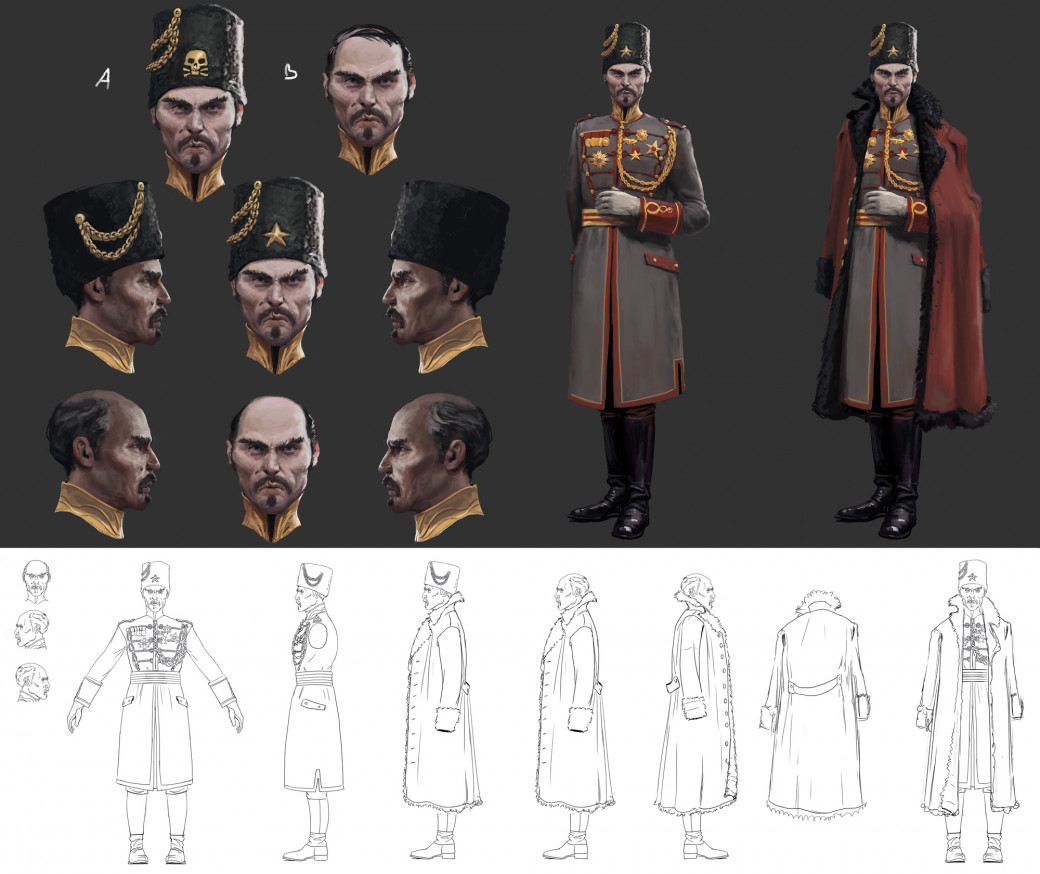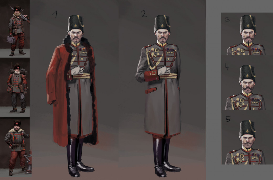 For new characters that aren’t directly referenced by Jakub’s art, our fantastic concept artist Daniel takes over: He creates several concepts and sends them to the game director Jan and the art director Stefan. They give him feedback and make suggestions. After some back and forth, they agree on a final design.