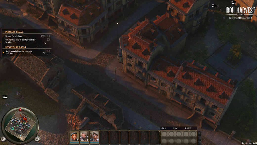 Our first city map posed quite a challenge, since it consists of a lot of buildings which can be entered and used for tactical combat situations. Also, line of sight is a major topic if you have units in the streets between tall buildings. Furthermore, one of our greatest and most fun features, the destruction of buildings and environment objects, puts a lot of stress on performance. This needs to be considered in the concept of the layout and the game-play walk-through.