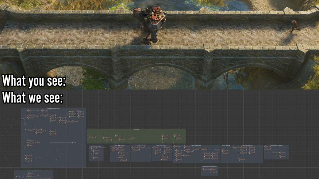 The entire team is working hard, pushing the game towards the finish line. Our implemented production logistics paid off and we made a lot of progress in the past months.