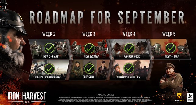 Four weeks ago, we released Iron Harvest for PC. We released an update every week since then and we are very happy to see the community thriving!