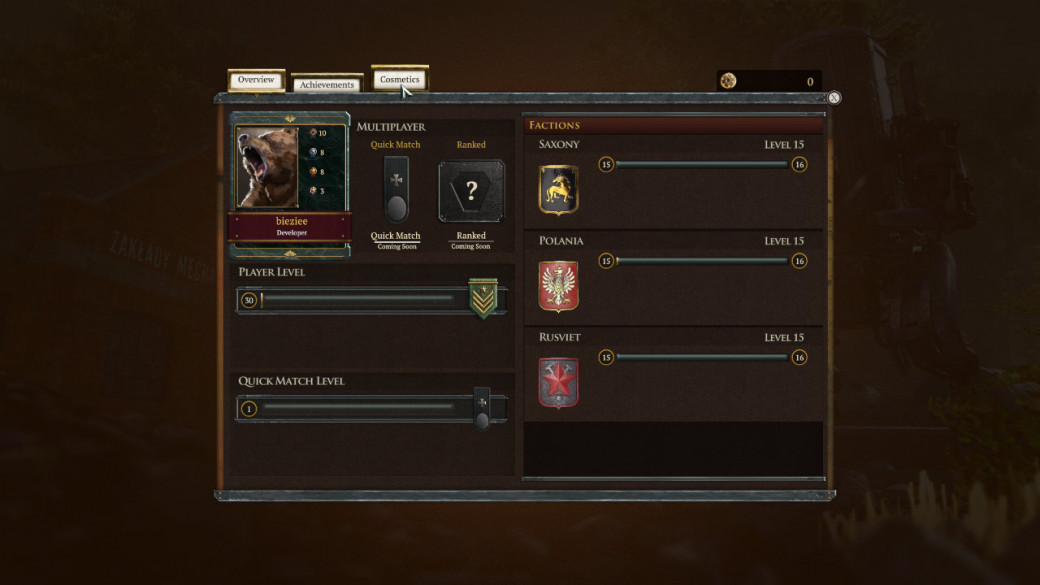 After starting Iron Harvest click on the Player Card to the very left of the Main Menu. Then click on the first button in the dropdown, labeled “Profile”.